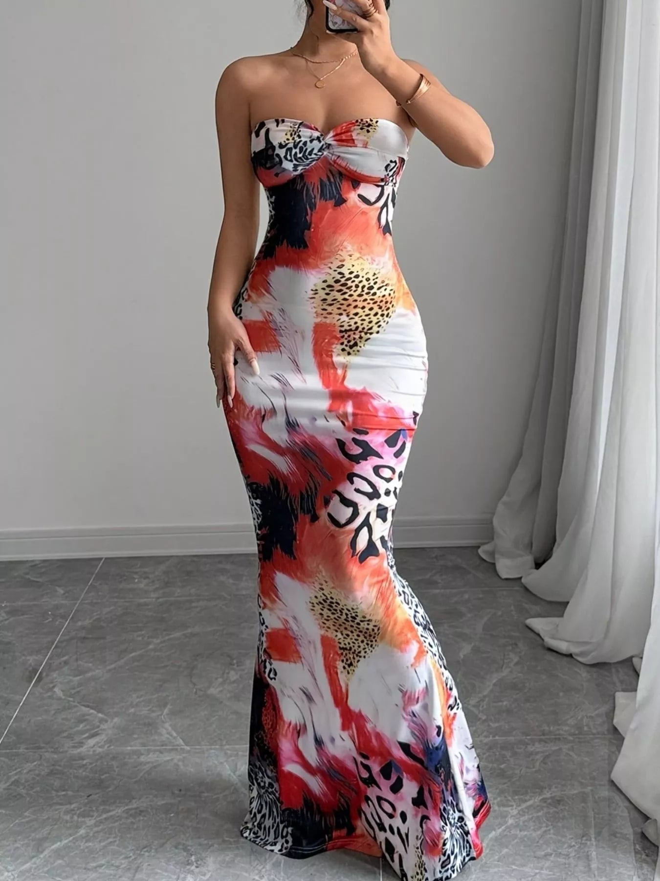 Ask about Abstract Print Bodycon Sweetheart Neck Tube Maxi Dress