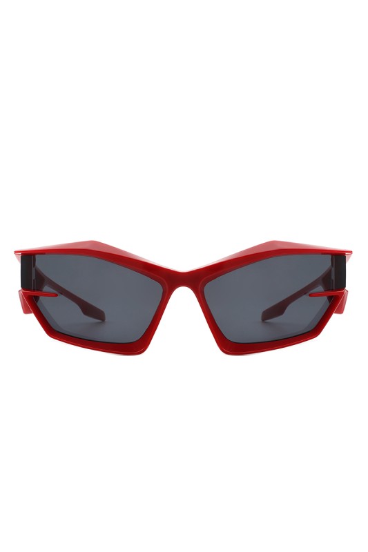 Futuristic angular sunglasses with a sharp, sporty design that delivers a bold and confident modern look.