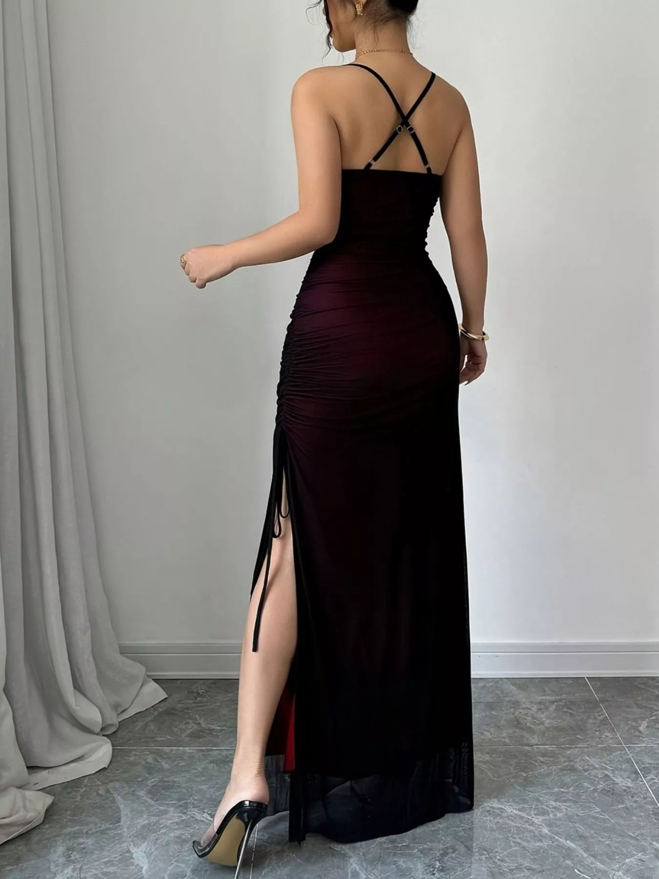 Ask about Ruched Sweetheart Neck Slit Maxi Dress